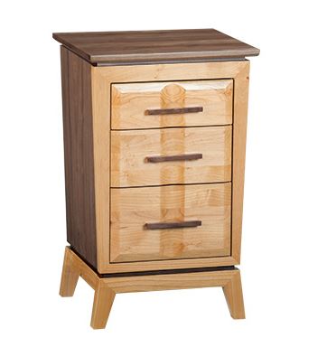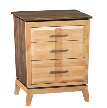 This collection was inspired by mid-century styling yet has a dramatic flair all its own. The remarkable combination of American Alder and Black Walnut hardwoods is stunning. Complementing this beautiful blend are bold design choices that set this group apart. A precisely engineered 45-degree miter face frame seamlessly surrounds spacious inset drawers. Coved drawer fronts exude solid wood and ensure the solid Black Walnut drawer pulls are a stand out feature. Beds offered in two styles for differing design aesthetics.