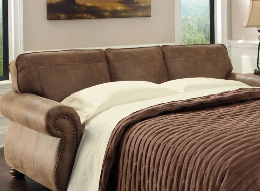Dramatically transform your living space with the rustic look of weathered leather you love—at a fraction of the cost. That’s the beauty of this faux leather sofa sleeper. Washed in earthy Southwestern tones, with generous back and seating support and jumbo window-pane stitching—it envelops you in comfort and quality. Classic elements such as roll arms and turned feet bring in just enough traditional touch, while an easy-glide pull-out queen mattress makes for modern convenience.