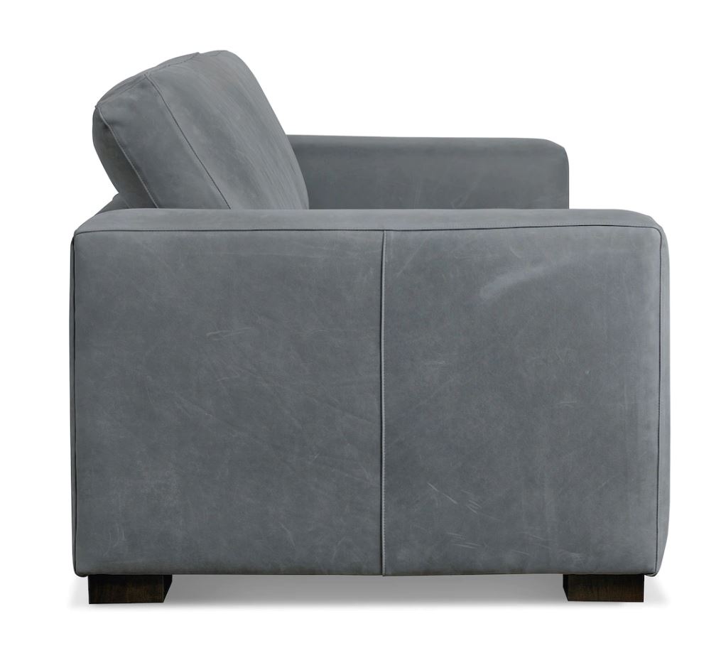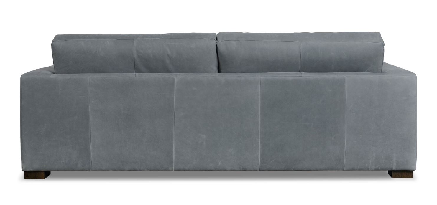 With the warm smell and soft, buttery feel of custom leather, you just might find the Bench Made Weldon Leather Sofa is your new favorite place in the whole home. Its casual, modern feel comes from low block legs and wide track arms. Generously sized 2/2 cushions have a clean, uncluttered vibe, with seamless waterfall wrap around edges. Loose box back cushions complete the look. Choose from selected Bench Made Smooth, Soft, Nubuck, and European Milan leathers, in a wide selection of colors.