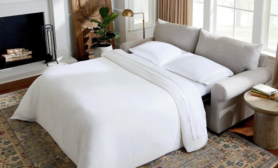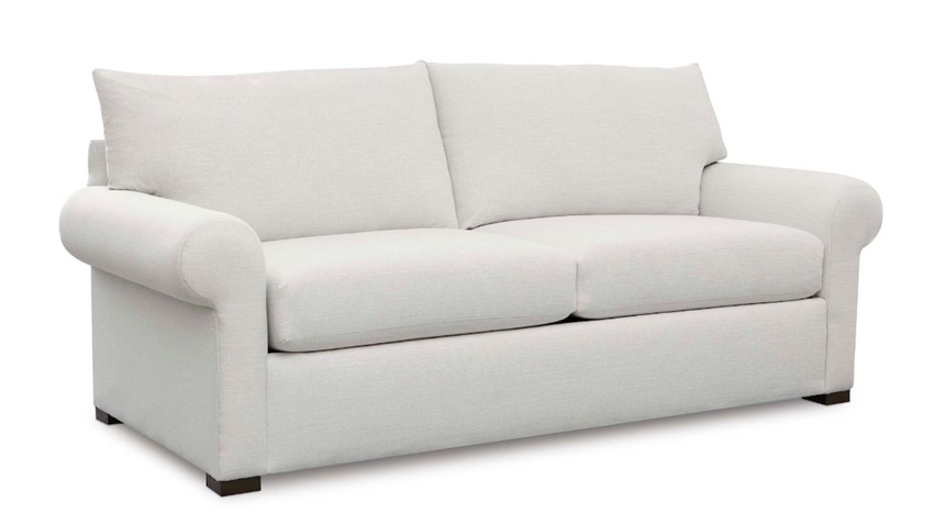 Like a breath of fresh air, the easygoing 2/2 Hanover Sofa adds a touch of relaxed transitional style. Soft, attached bed pillow back cushions and top-stitched seat cushions create a look that's just as comfortable as it is inviting. Low-block legs with Brindle finish complement the fabric options. Choose from Cloud or Driftwood Revolution fabric.