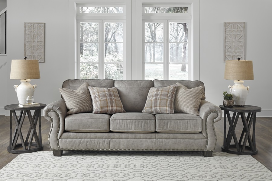 Seamlessly merging classic elements with modern trends, this sofa invites you to bring home the best of then and now. Wrapped in a fabulous steel gray upholstery with sumptuous suede-like feel, this easy-elegant sofa is dressed to impress with updated roll arm styling and tailored touches including nailhead trim and window pane stitching. What you can’t see is every bit as impressive. Reversible seat cushions crafted with our highest quality coils provide a bit of bounce and plenty of comfort and support.