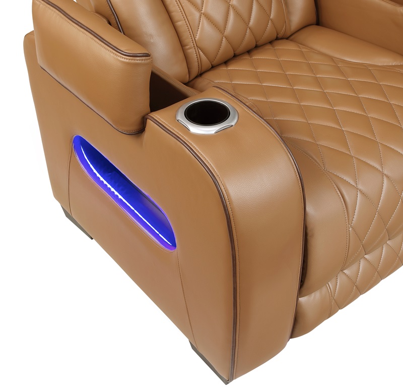 Power Reclining Chair with Power Headrest, Cup holders and Storage Arms(Top and Side), Charging Ports and LED lighting