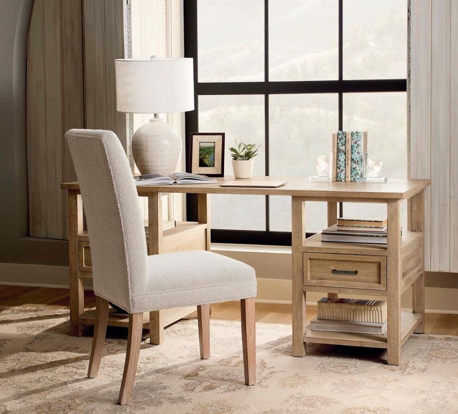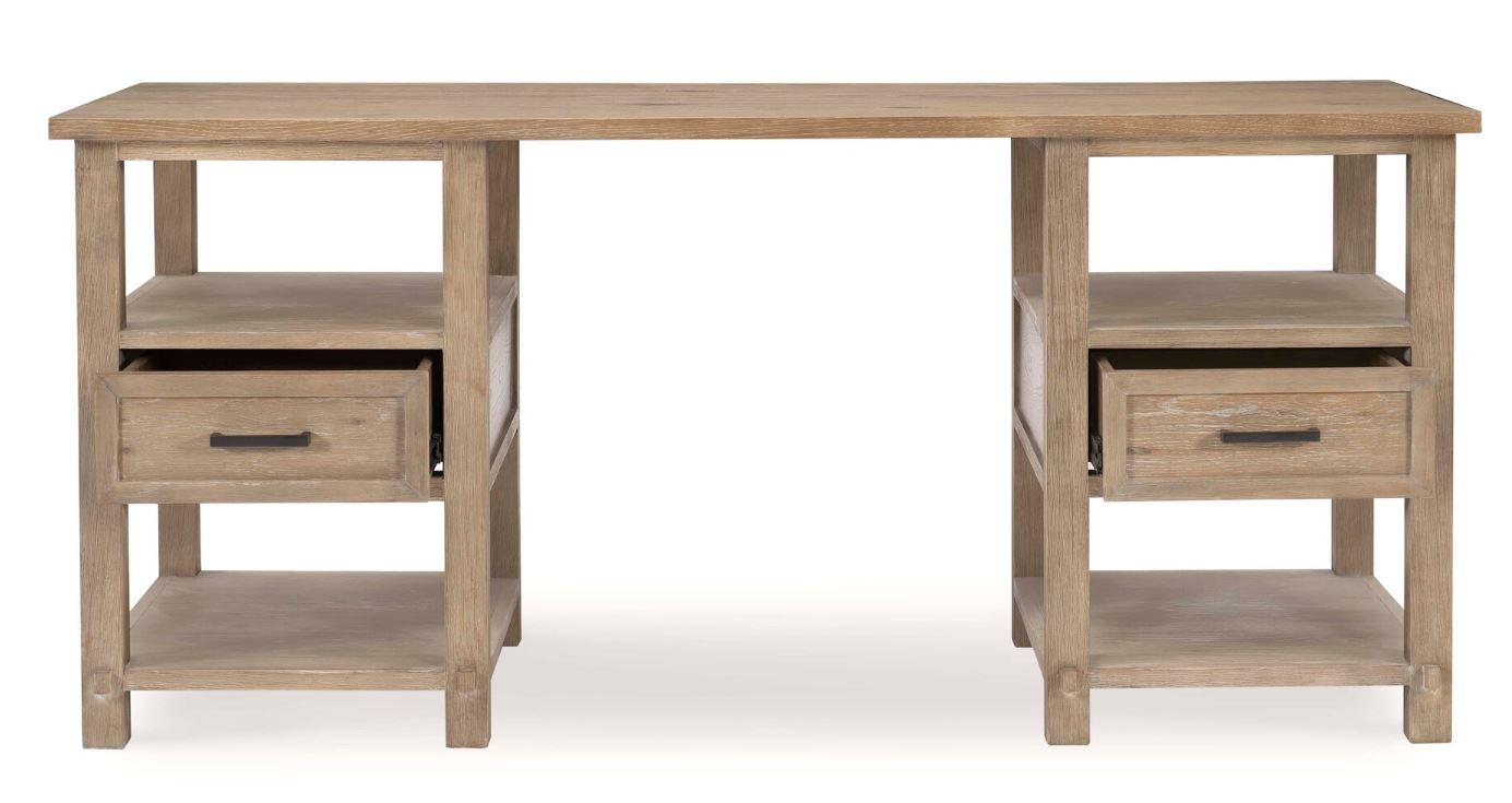 With a timeless design and functional appeal, the Sullivan Desk meets all needs. Open shelves and drawers featuring solid brass hardware creates the perfect space for your home office.